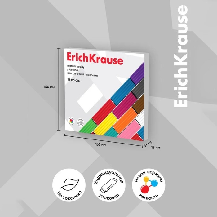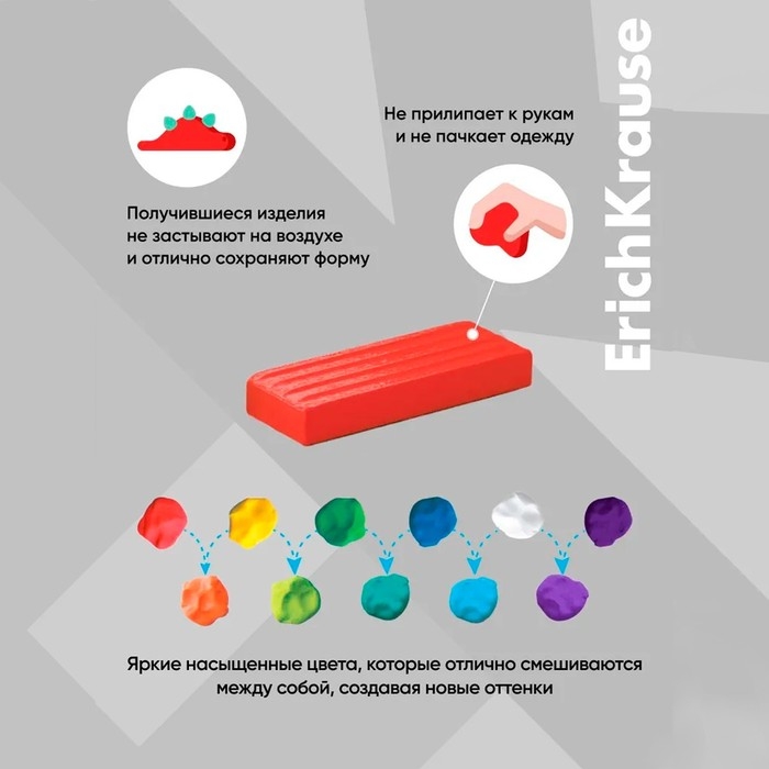 Классический пластилин ErichKrause® средней мягкости создан для решения широкого круга творческих задач и для развития мелкой моторики. Пластилин отлично сохраняет свою форму и не застывает на воздухе, а также не прилипает к рукам и не пачкает одежду.