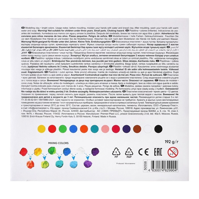 Пластилин 12 цветов, 192 г, ErichKrause, в картонной упаковке