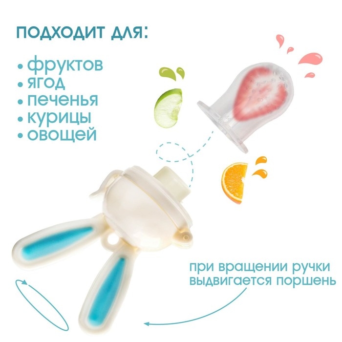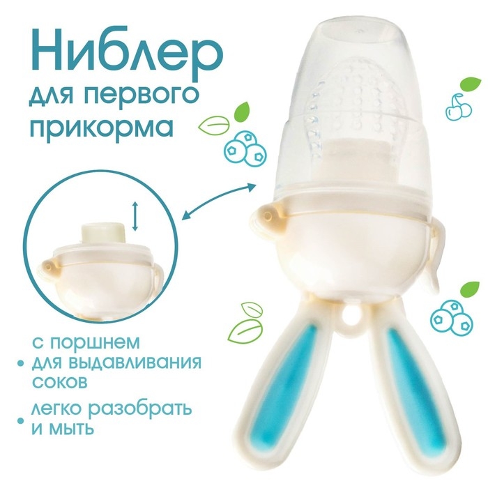 Изделие для прикорма (ниблер) пригодится в период, когда ребёнок переходит с кашки и молока на твёрдую пищу. Приспособление разовьёт у крохи жевательные навыки. Также предмет будет безопасно массировать дёсны во время прорезывания зубов.