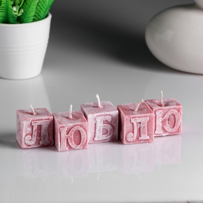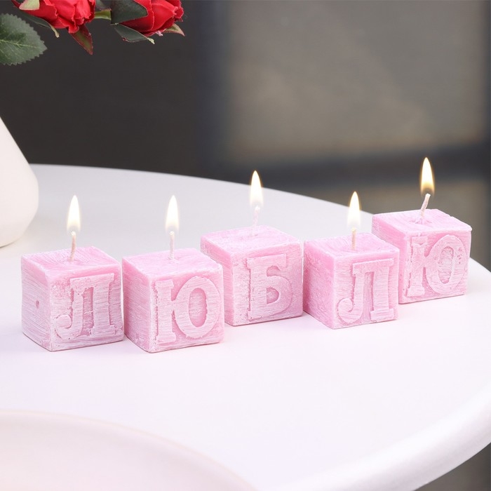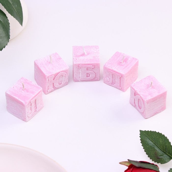 Набор свечей- букв "Люблю" розовые, 5 шт
