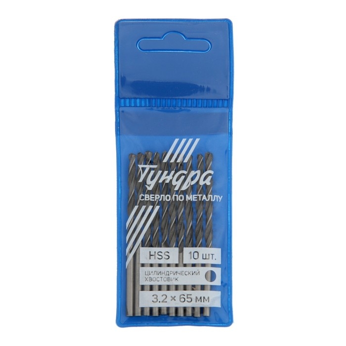 Сверло по металлу ТУНДРА, HSS, цилиндрический хвостовик, 3.2 х 65 мм, 10 шт.