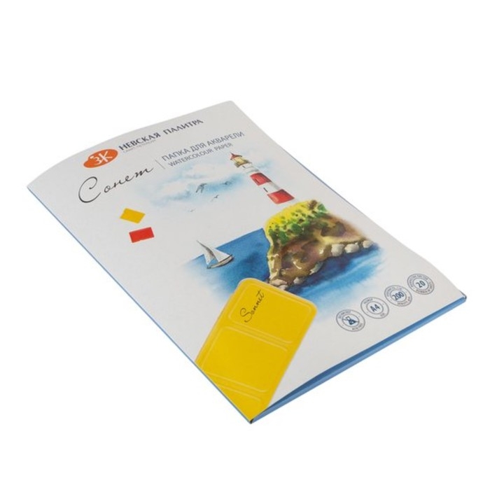 Бумага для акварели в папке А4, ЗХК "Сонет", 20 листов, 200 г/м2, среднезернистая, (80451623)