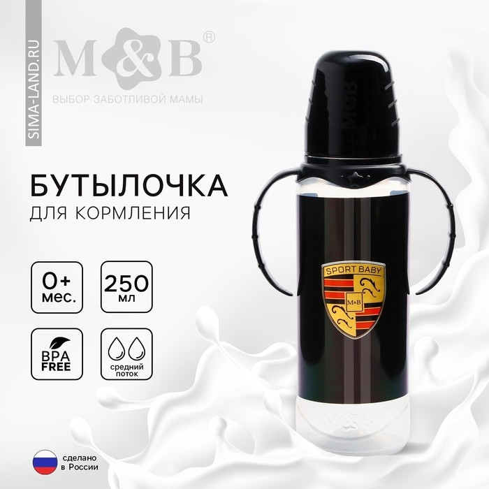 Бутылочка для кормления Sport car, классическое горло, от 0 мес, 250 мл., цилиндр, с ручками