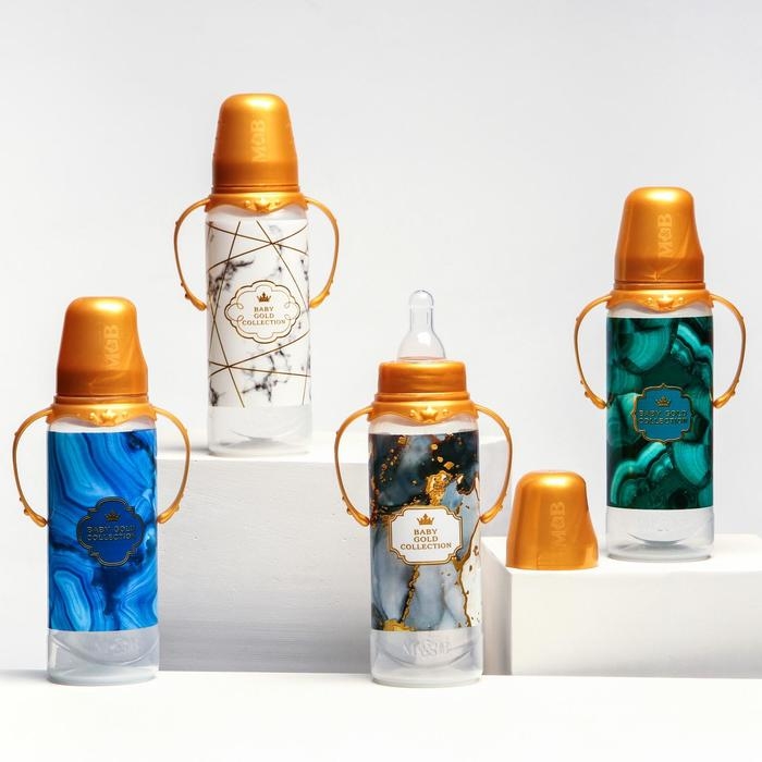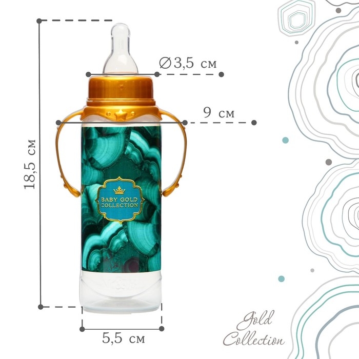 Бутылочка для кормления «Золотая коллекция: малахит», классическое горло, 250 мл., от 0 мес., цилиндр, с ручками