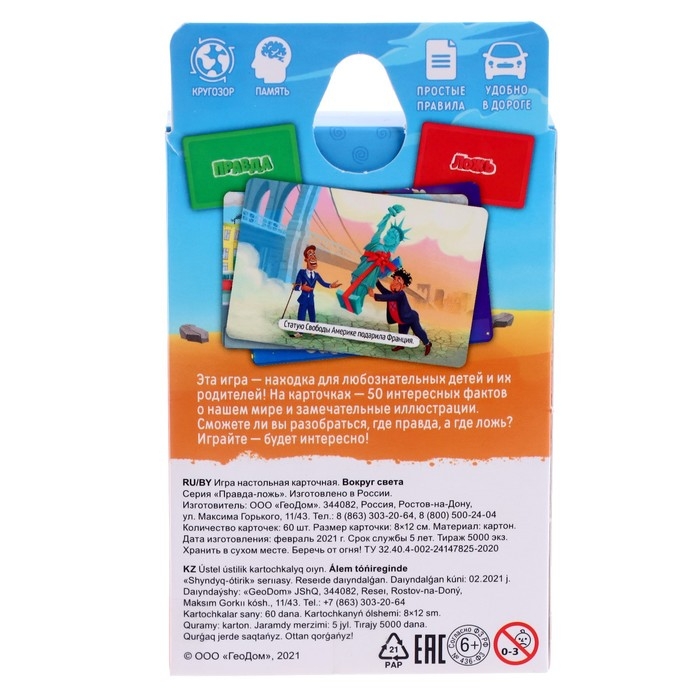 Карточная игра «Правда-ложь Вокруг света», 60 карточек