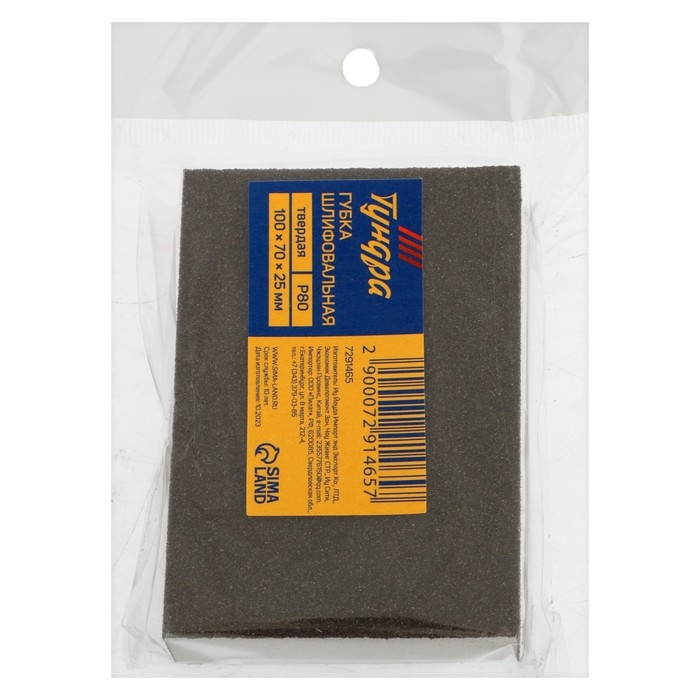 Губка абразивная шлифовальная ТУНДРА, твердая, 100 х 70 х 25 мм, P80