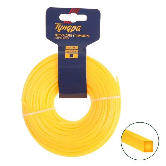 Леска для триммера ТУНДРА, сечение квадрат, d=3 мм, 50 м, нейлон