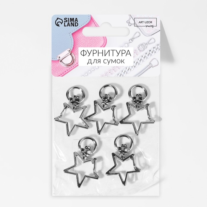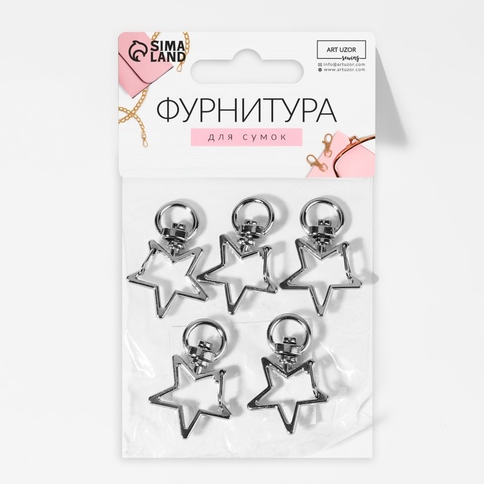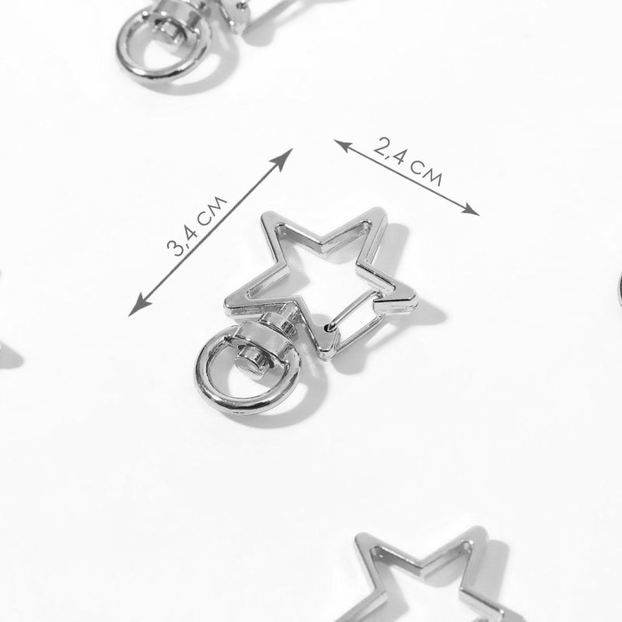 Карабин металлический «Звезда», 34 × 24 мм / 8 × 2,2 мм, 5 шт, цвет серебряный