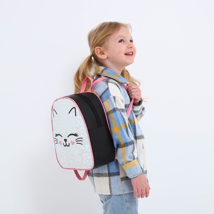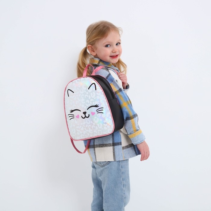 Рюкзак детский для девочки искусственная кожа, MEOW, кот, голография, 27х23 х 10 см