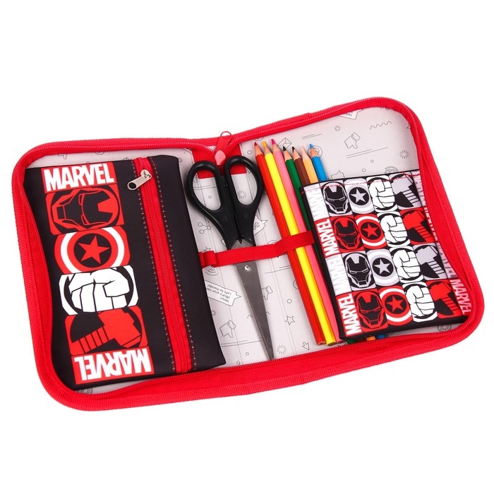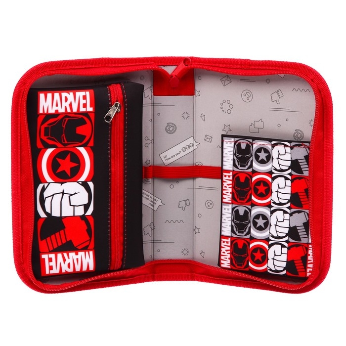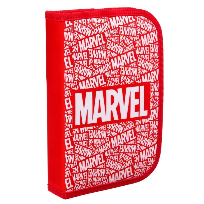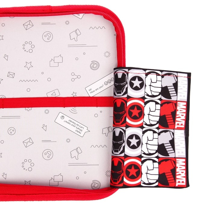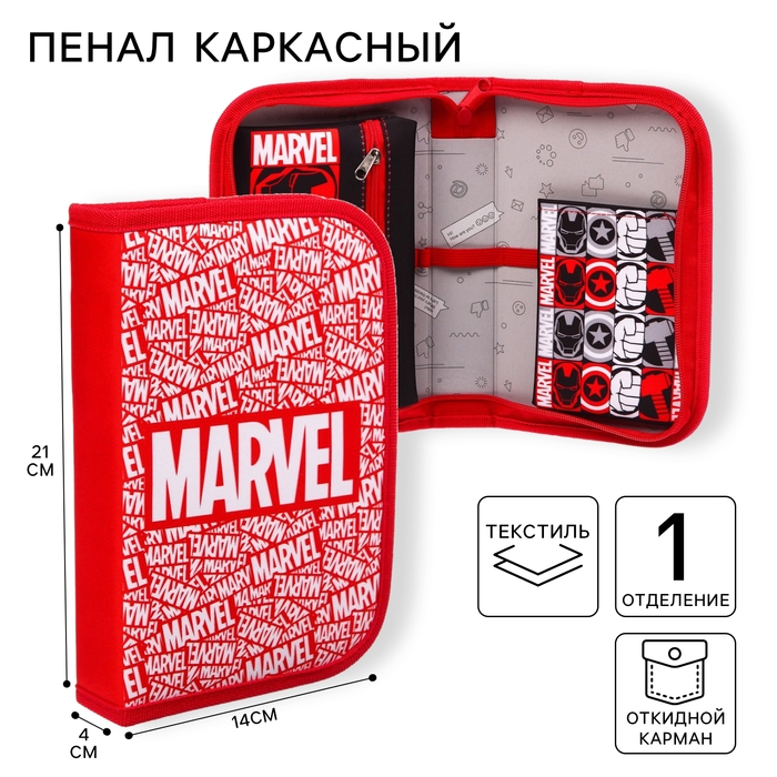 Пенал каркасный, 1 секция, 140х210х40 мм, откидной карман, тканевый, Мстители