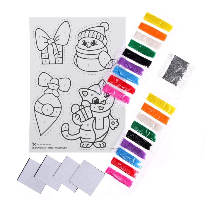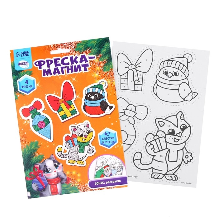 Магнит - фреска своими руками на новый год «Снегирь и котик», новогодний набор для творчества