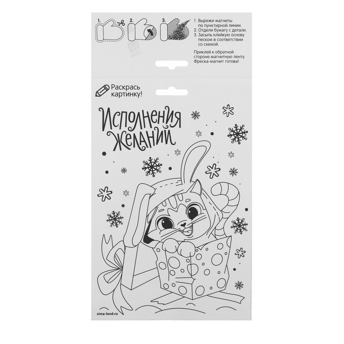 Фреска песком — увлекательный вид творчества, который понравится ребёнку. Клеевая основа защищена специальным слоем бумаги, куда нанесены прорезные контуры. Каждый цвет находится в своей зоне: отделяйте верхний слой с помощью стеки и засыпайте элементы песком.