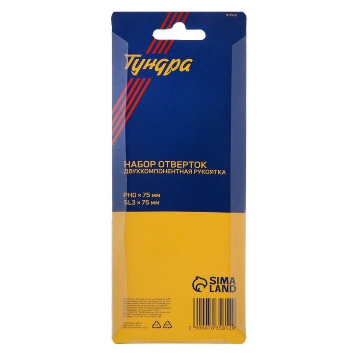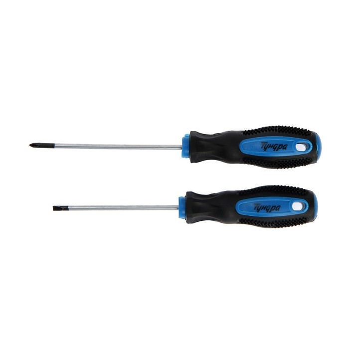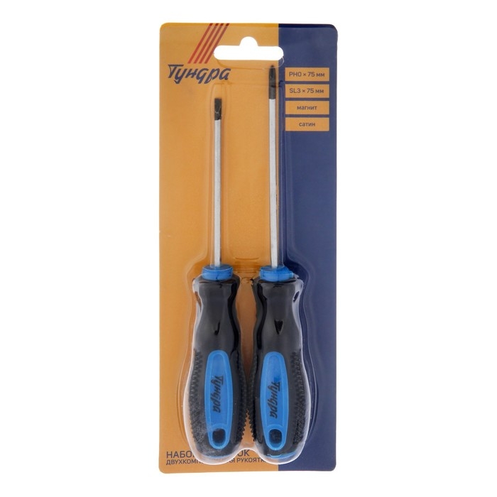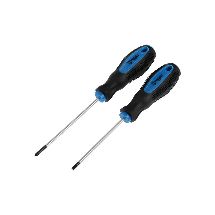 Набор отверток ТУНДРА, сатин, магнит, 2К рукоятки, PH0 и SL3 х 75 мм, 2 шт.