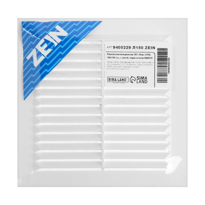 Решетка вентиляционная ZEIN Люкс Л150, 150 x 150 мм, с сеткой, неразъемная