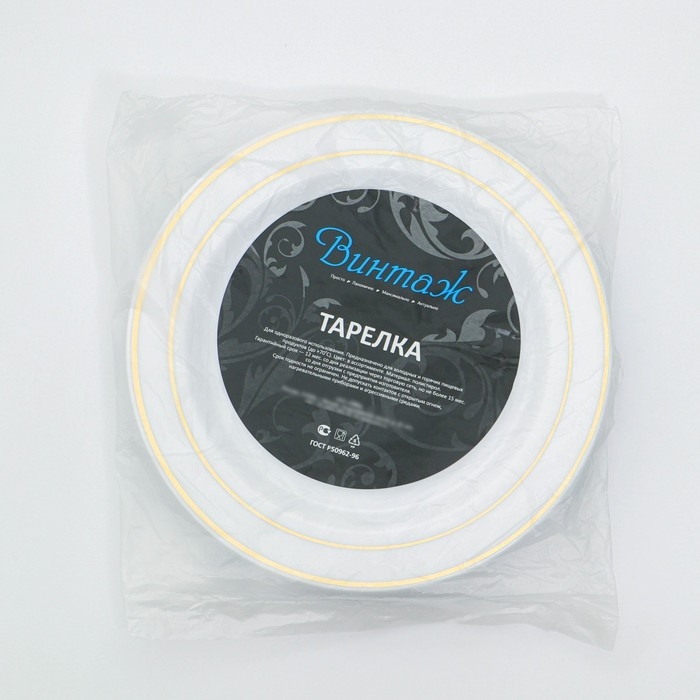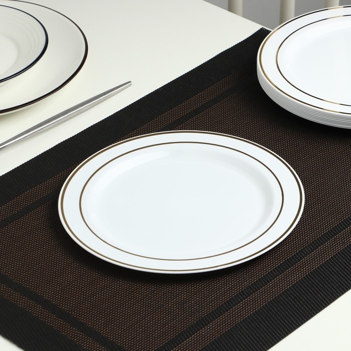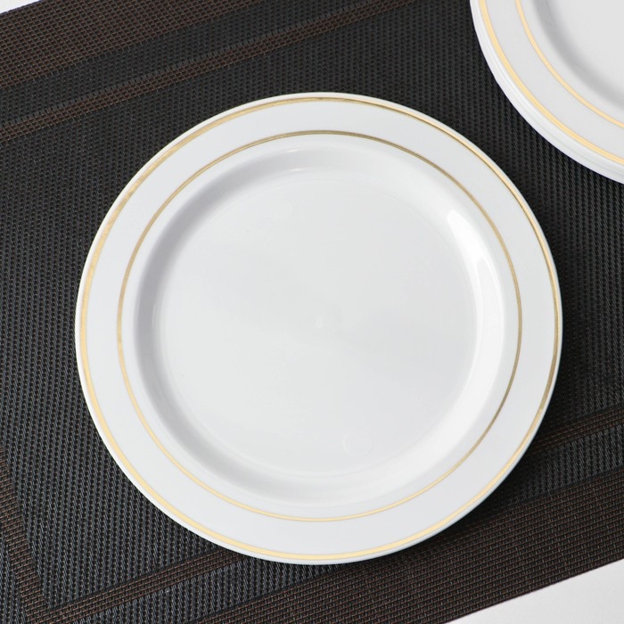 Тарелка пластиковая одноразовая, 19 см, круглая, плоская, цвет белый с золотой каёмкой