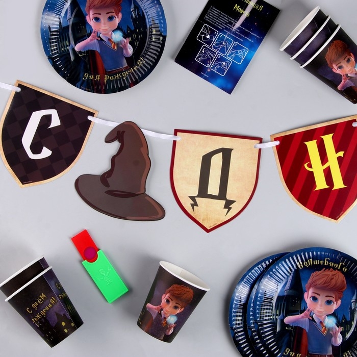 Набор бумажной посуды одноразовый Волшебного дня рождения!»: 6 тарелок, 6 стаканов