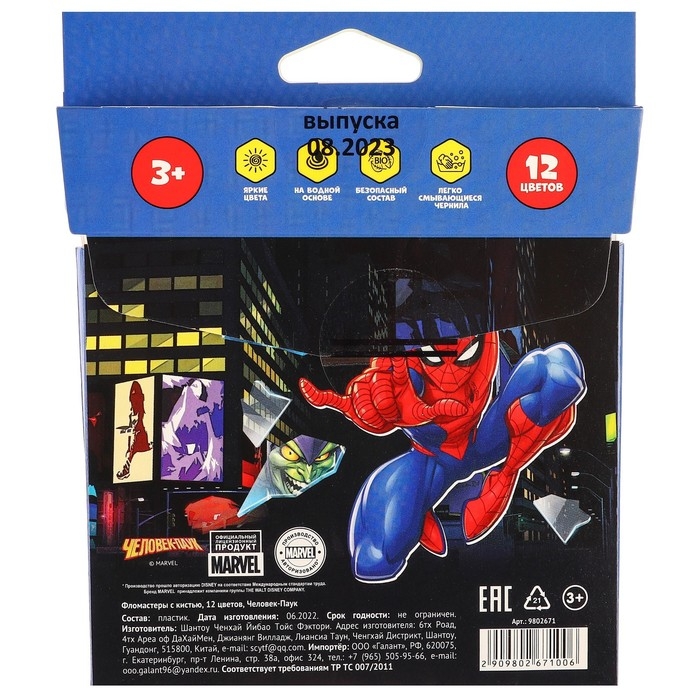 Фломастеры с кистью, 12 цветов, Человек-паук