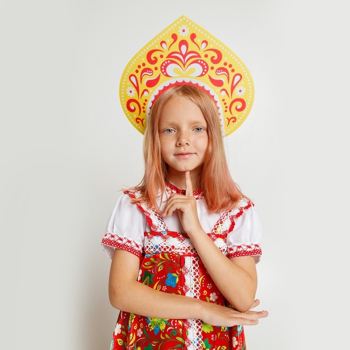 - Кокошник представлен в едином размере, который подходит для детей и взрослых.