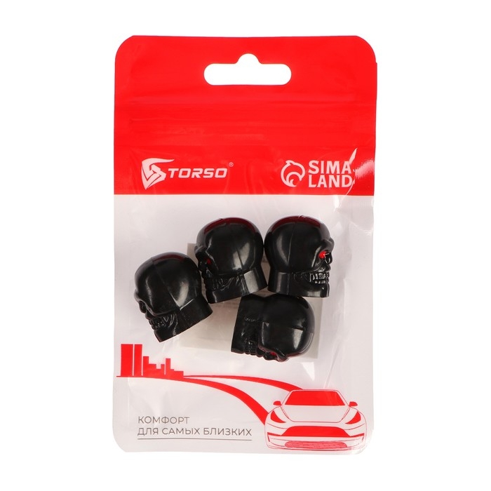 Колпачок на вентиль TORSO, "Череп", черный, набор 4 шт