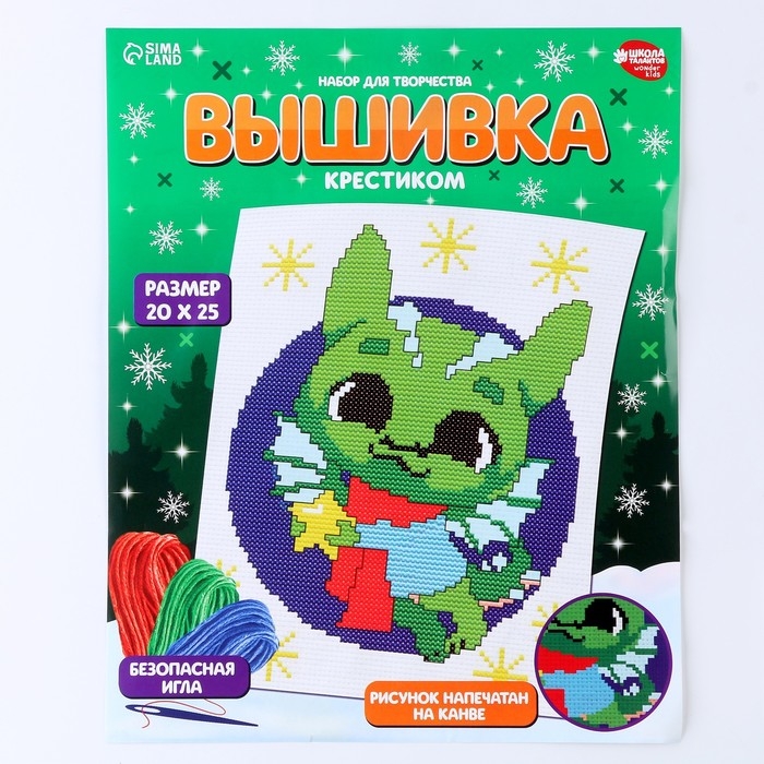 Вышивка крестиком на новый год «Дракончик со звёздочкой», 25 х 20 см, новогодний набор для творчества