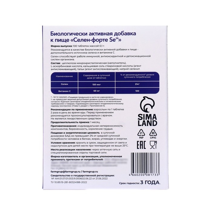 Селен Форте Se34, 100 таблеток по 100 мг - Биологически активная добавка (БАД) к пище рекомендуется в качестве дополнительного источника селена.