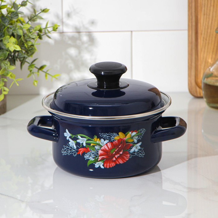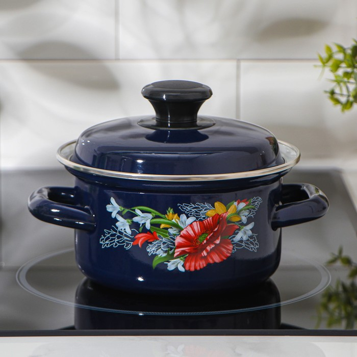 Кастрюля эмалированная цилиндрическая, 1 л, деколь МИКС, индукция