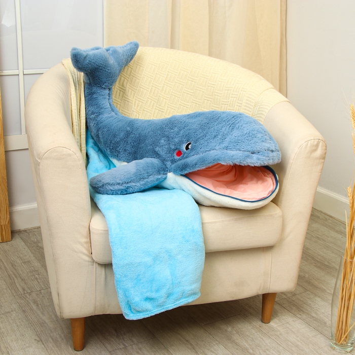 Мягкая игрушка «Кит», 75 см, с пледом, рот на молнии