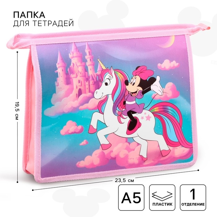 Папка д/тетрадей А5 молния сверху пластик ПМ-А5-29, Минни и Единорог