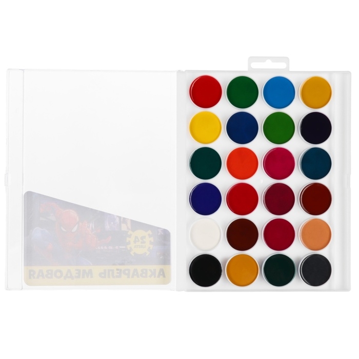 Акварель 24цв пластик, «Человек-паук», европодвес