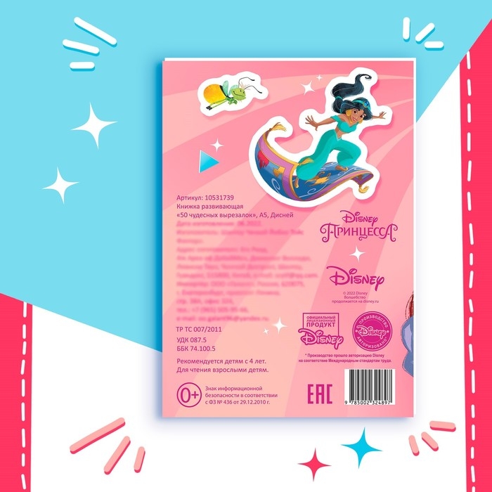 Книжка развивающая «50 чудесных вырезалок», А5, Дисней