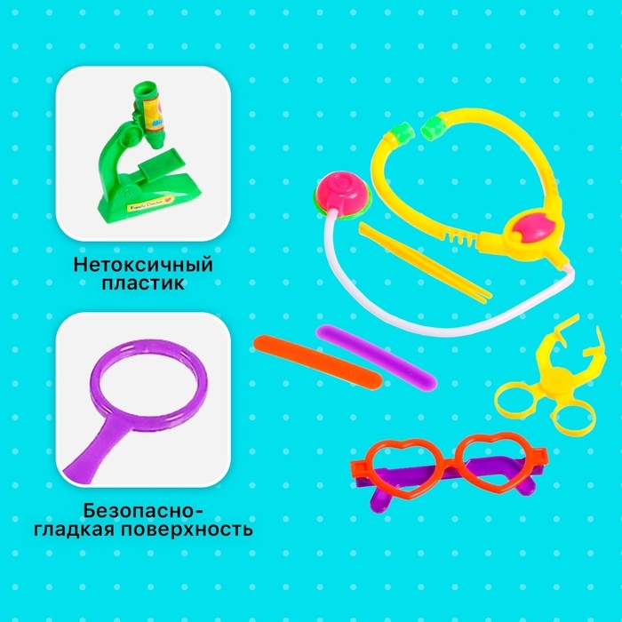 Набор доктора способствует развитию воображения, логики, внимания, навыков построения игры, поможет лучше понять профессию врача, научит проявлять заботу.