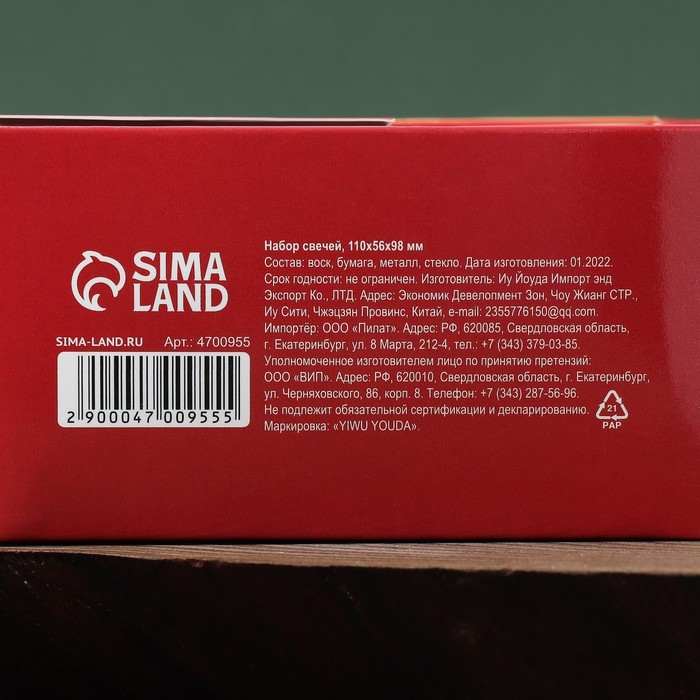Набор новогодних свечей "Мандарины в ящике", 2 шт, 6,2×14×7,4 см
