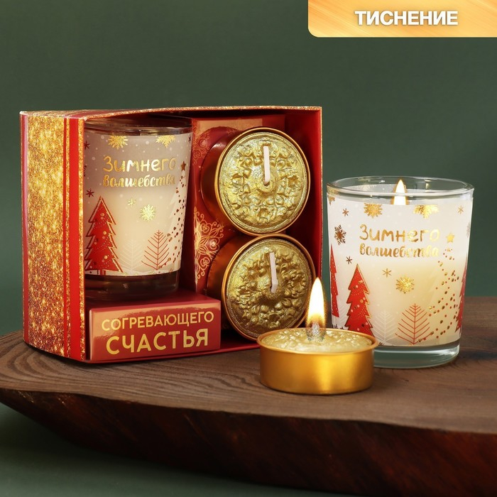 Новогодние витые свечи с декором «Тепла в Новом году!», на Новый Год, набор
