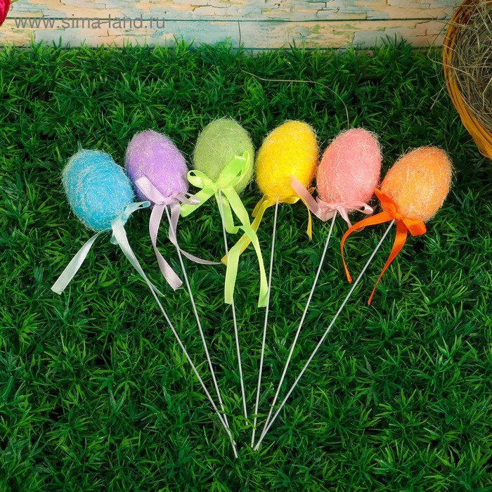 Декор пасхальный на палочке "Яйцо цветные блёстки" набор 6 шт яйцо 5х7 см 23х5х5 см