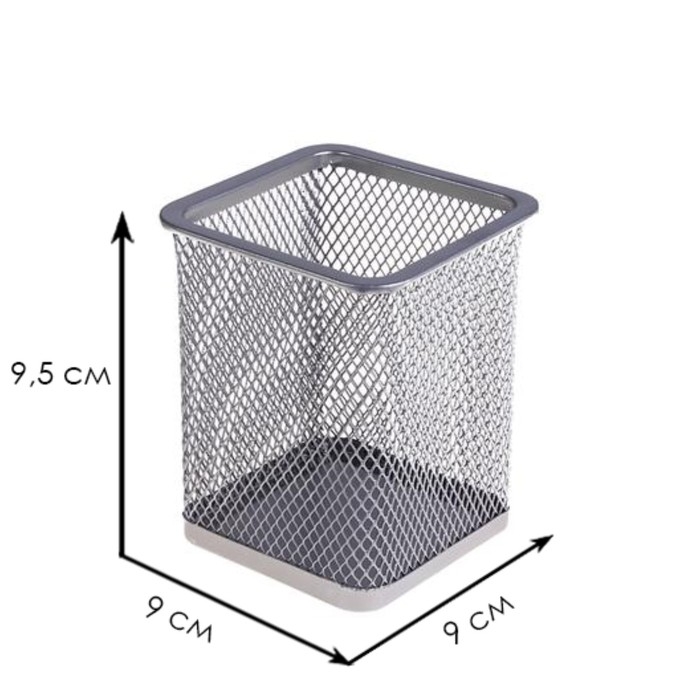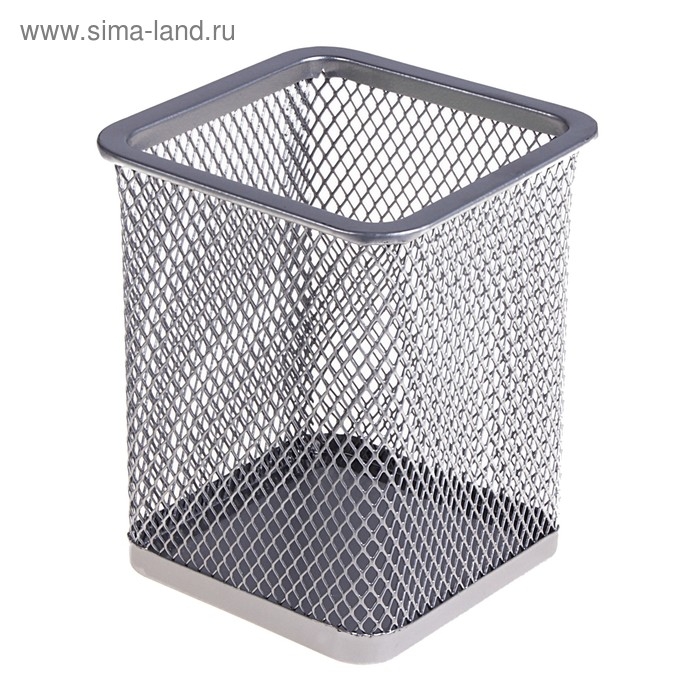 Стакан для ручек, квадратный, металлическая сетка, серый