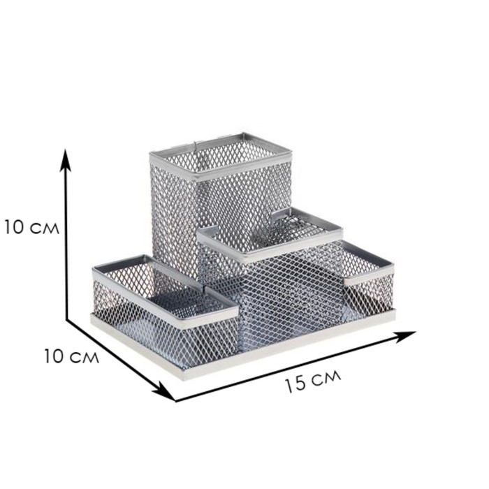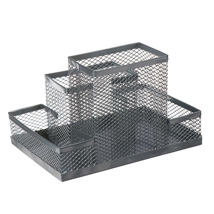 Подставка для канцелярских мелочей 4 отделения, светлая, металлическая сетка