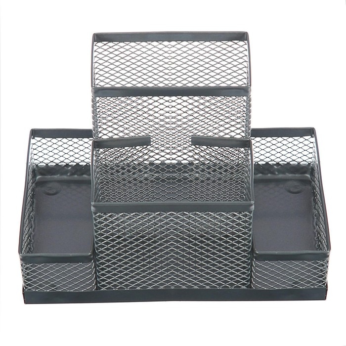 Подставка для канцелярских принадлежностей, 5 отделений, сетка, металл, чёрная