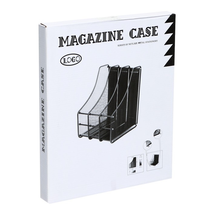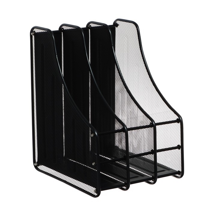 Лоток вертикальный для бумаг, 3 отделения, металлическая сетка, черный