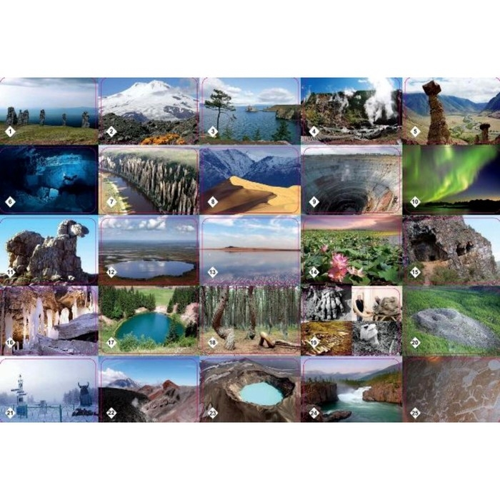 «Природные чудеса России» — это разновидность игр мемо. Их особенность в том, что успех зависит не от удачи, а от способностей и стараний игроков. Набор состоит из 50-ти карточек с парным изображением прекрасных мест России.
