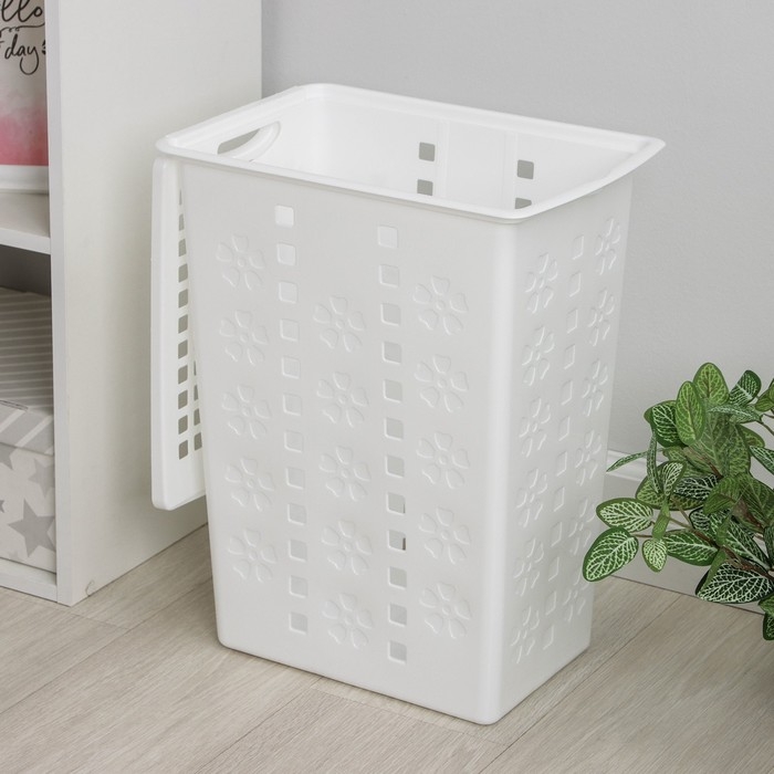 Корзина бельевая с крышкой «Виолетта», 30 л, 36×26,5×47,5 см, цвет белый