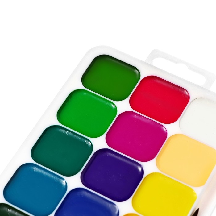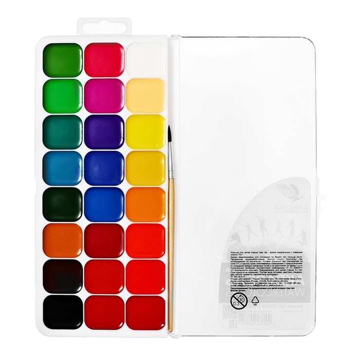 Краски акварельные, + 1 кисть, в пластиковой коробке, 18 цветов