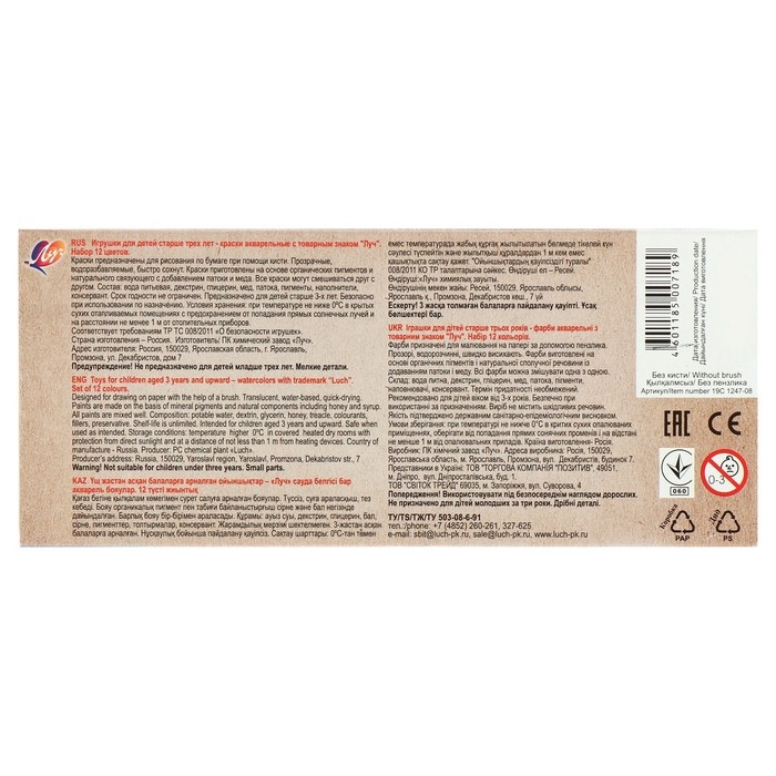 Краски акварельные Zоо медовые полусухие изготовлены на основе органических пигментов и пчелиного мёда. Акварель соответствуют европейским директивам безопасности.