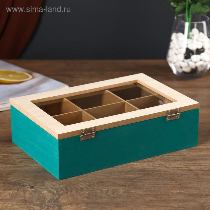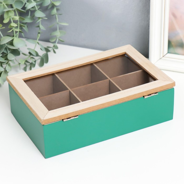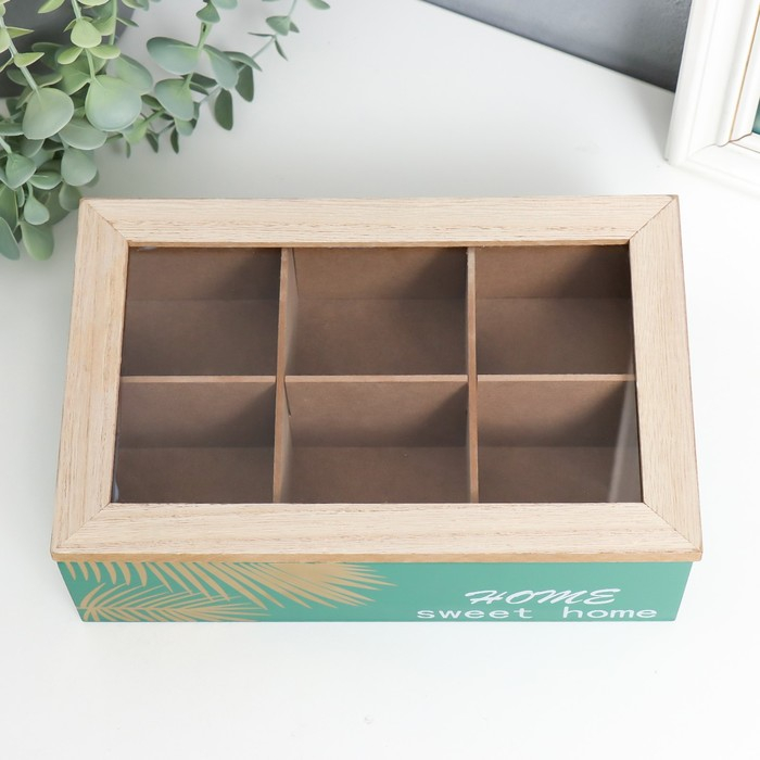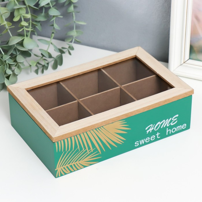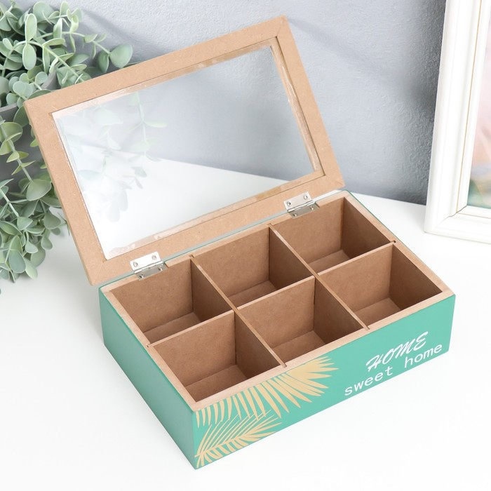 Шкатулка дерево с делениями "Пальмовые листья" зелёная с золотом 7х16,5х24 см