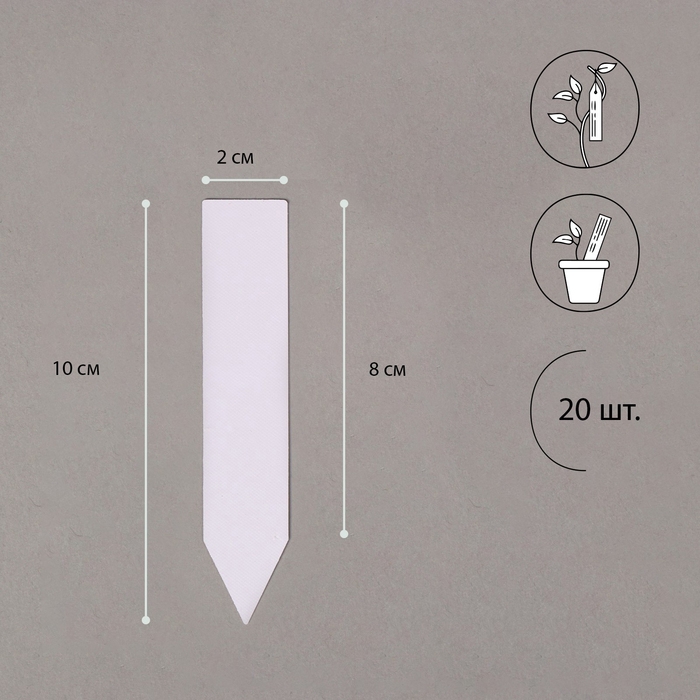 Бирки садовые, для маркировки растений, 5×2 см, набор 20 шт., пластик, МИКС, Greengo