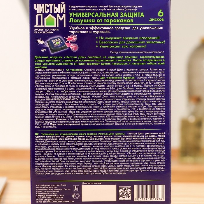 для профилактики появления тараканов заменяйте ловушки «Чистый Дом» каждые 2 месяца. При использовании ловушек «Чистый Дом» не рекомендуется применять аэрозольные инсектицидные средства. Ловушку «Чистый Дом» использовать сразу же после освобождения от упаковки.