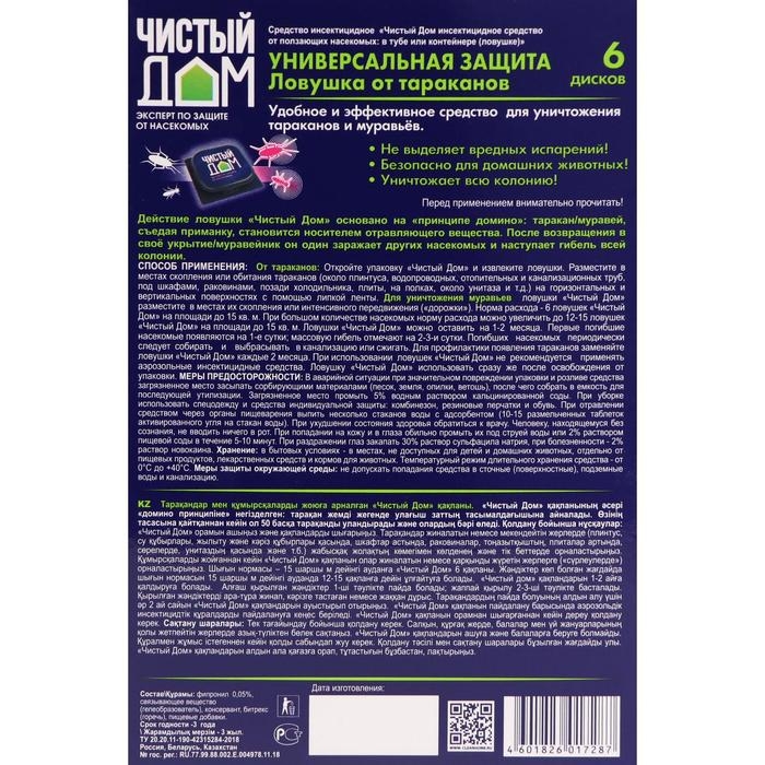 Ловушка инсектицидная от тараканов "Чистый дом", уп 6 шт
