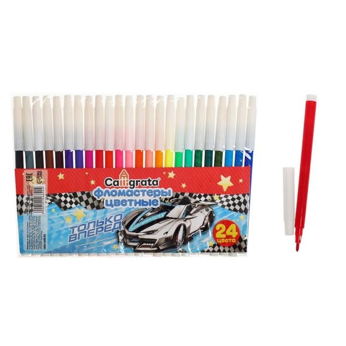 Фломастеры 24 цвета "Машинка", невентилируемый колпачок