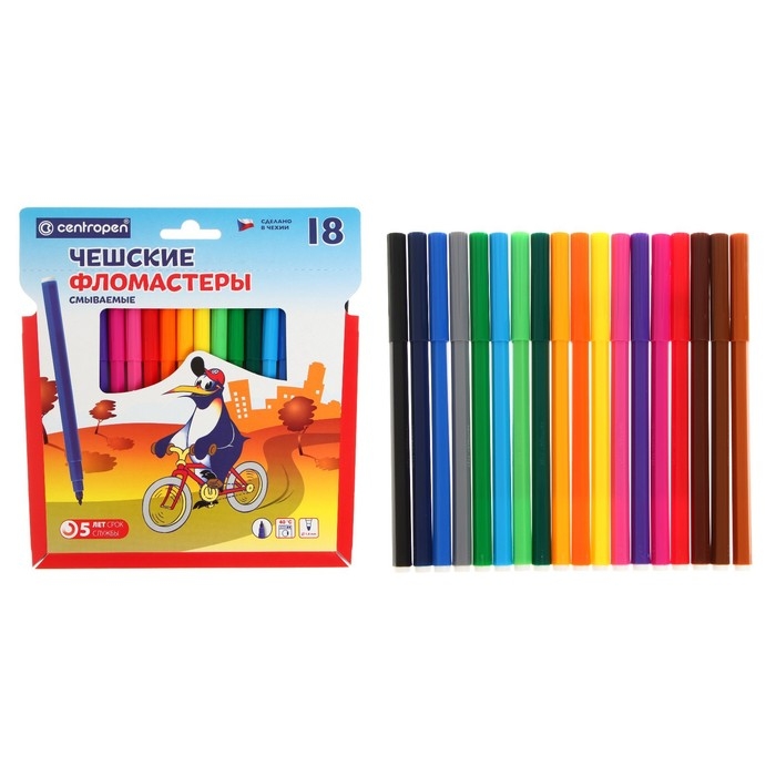 Фломастеры 18 цветов Centropen 7790/18 Пингвины, линия 1.0 мм, пластиковый конверт
