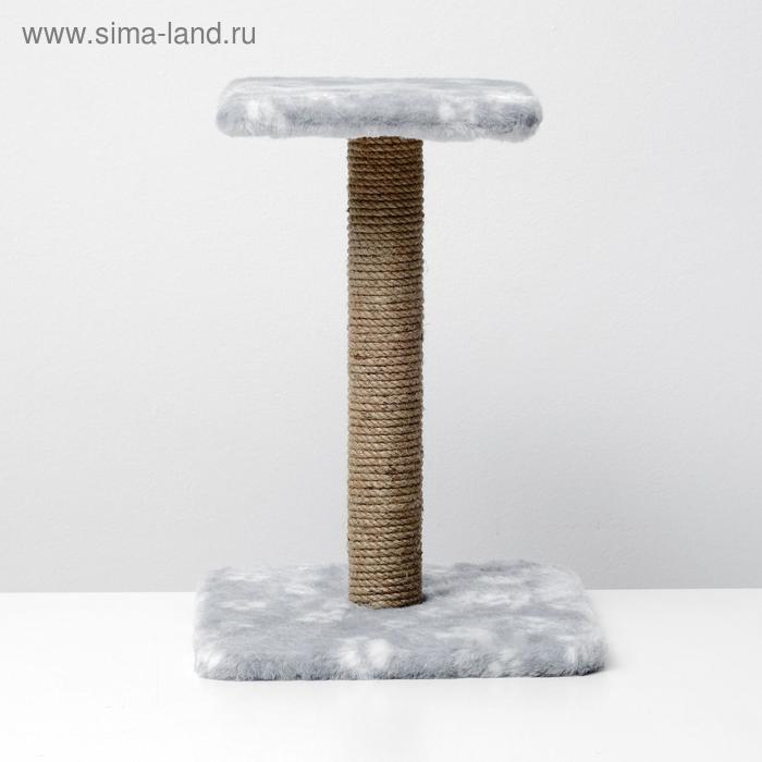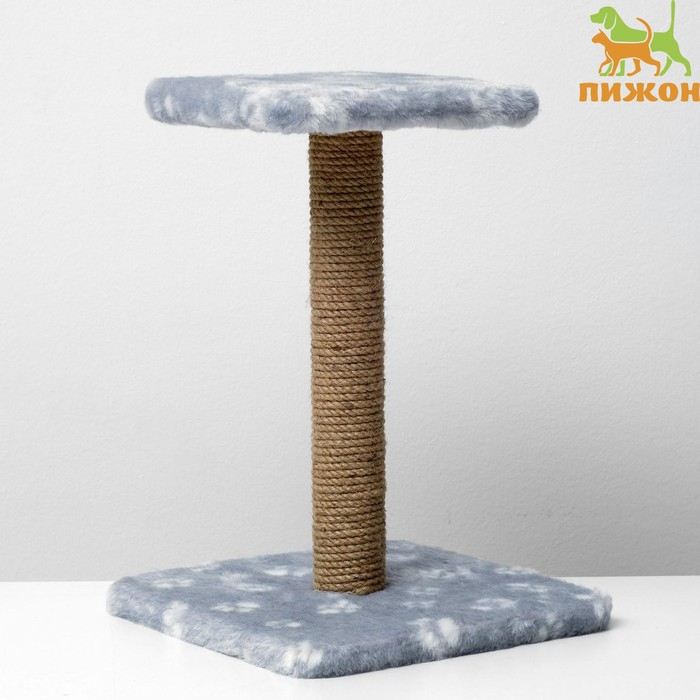 Когтеточка "Полка" с подставкой, 30 х 30 х 40 см, джут, серая с лапками