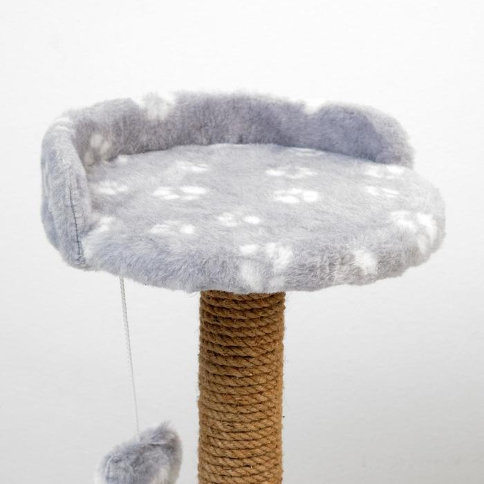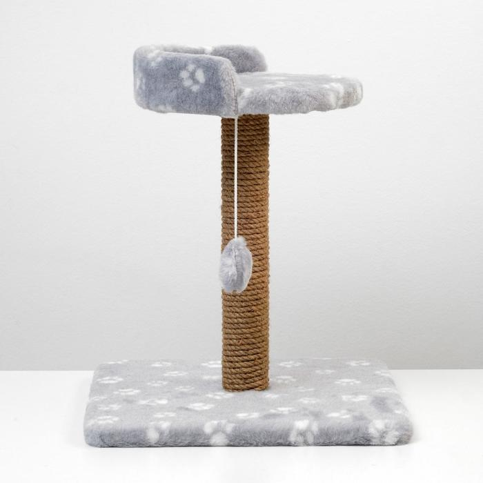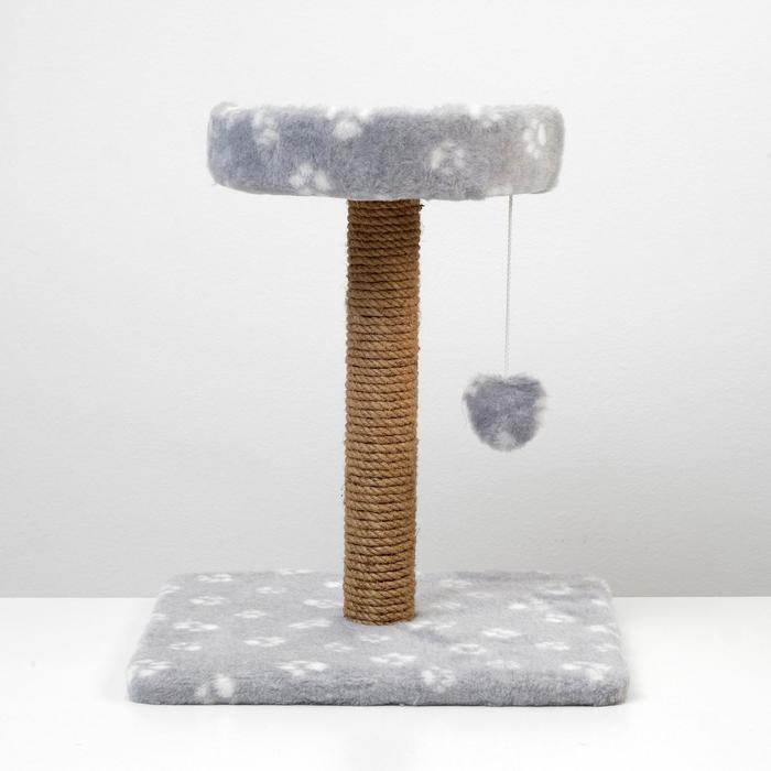 Когтеточка малая "Арена" с игрушкой, 40 х 40х 50 см, джут, серая с лапками